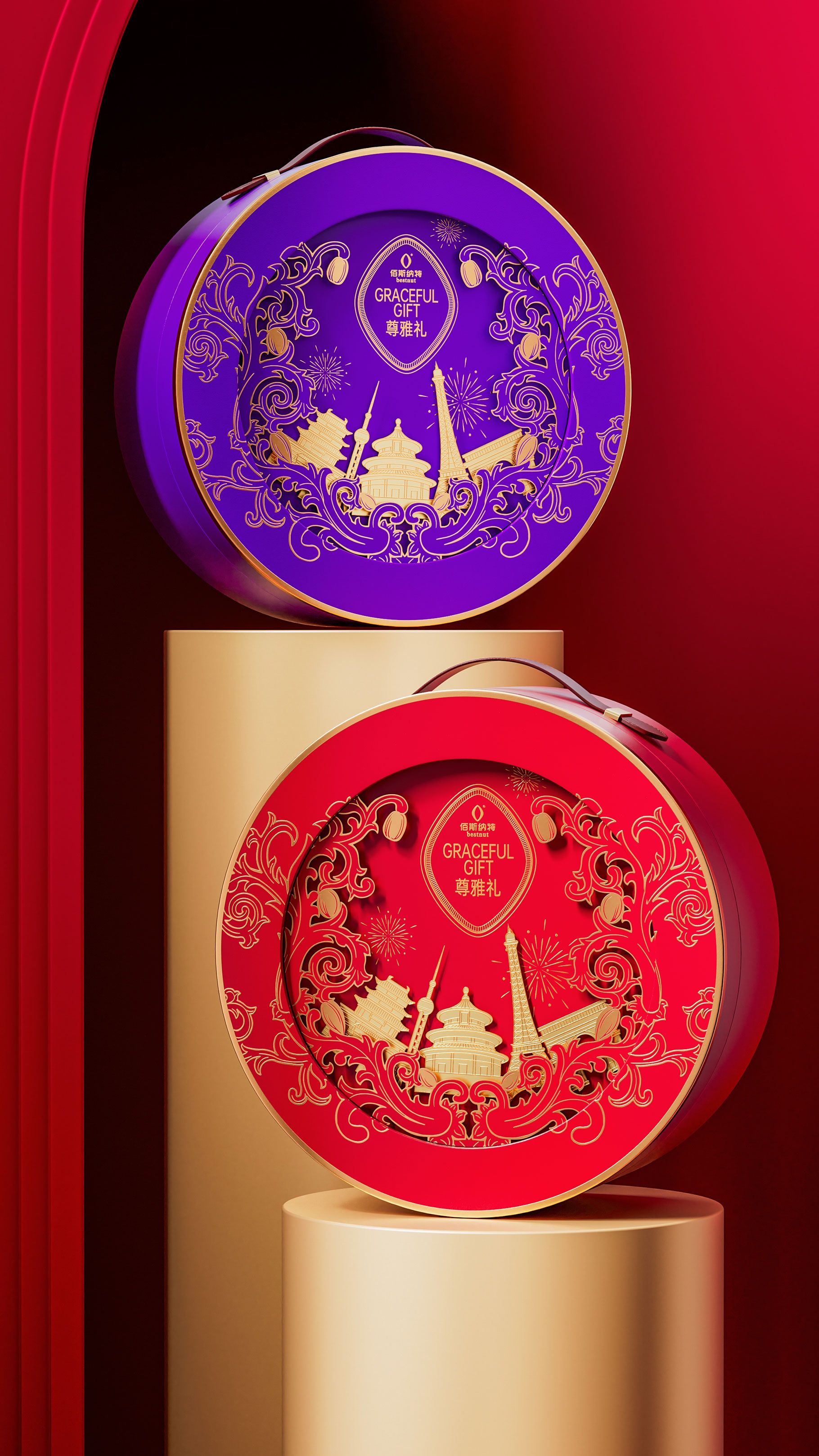 尊雅禮包裝旨在打造一款融合全球視野與高雅品味的獨特包裝,以滿足追求高品質、國際化產品的消費者需求。通過選取世界著名地標作為環繞元素,傳達出跨越地域界限的文化包容與審美追求,使產品在眾多競品中脫穎而出。