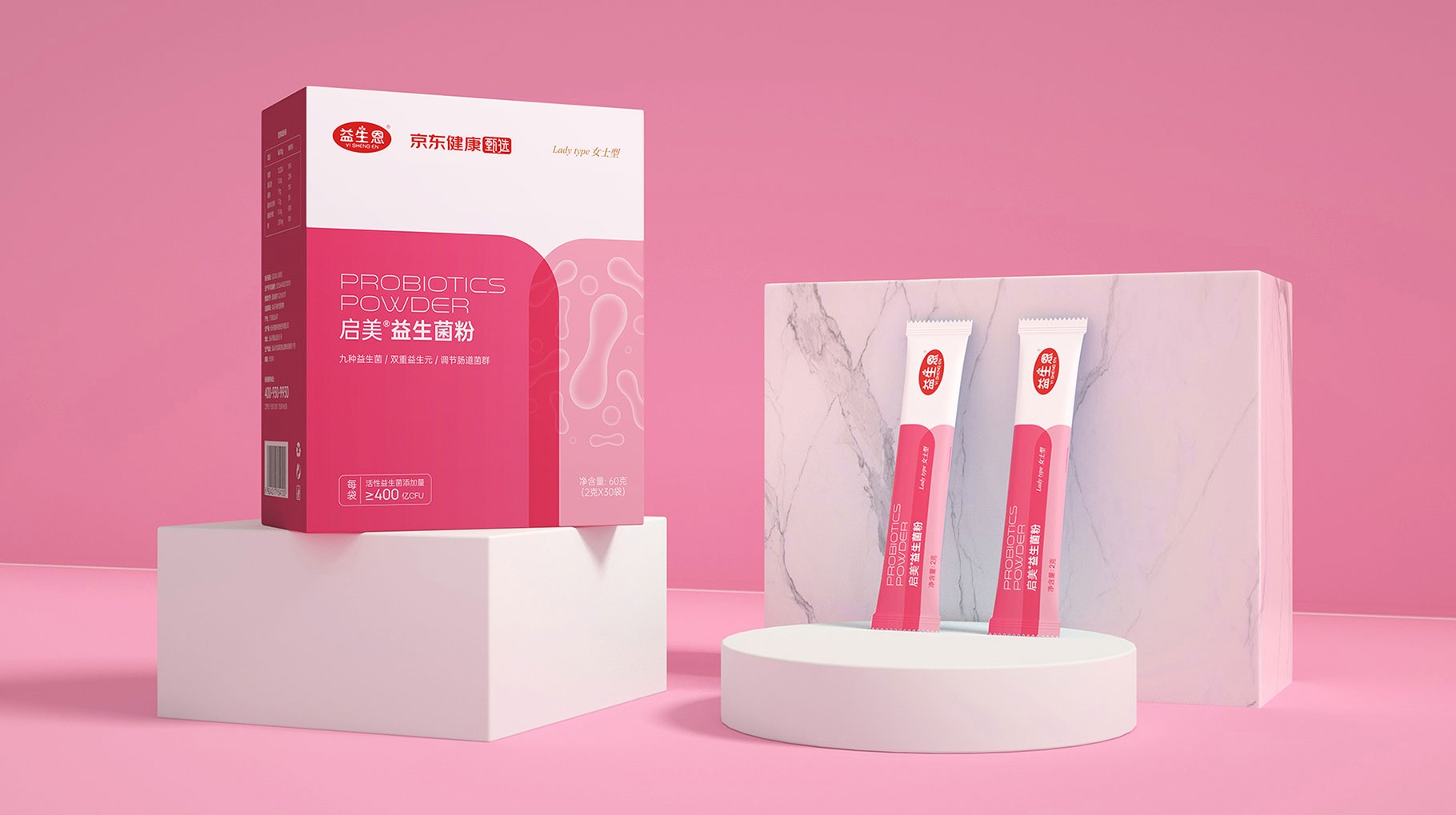 京東健康甄選啟美益生菌粉 保健品包裝設計