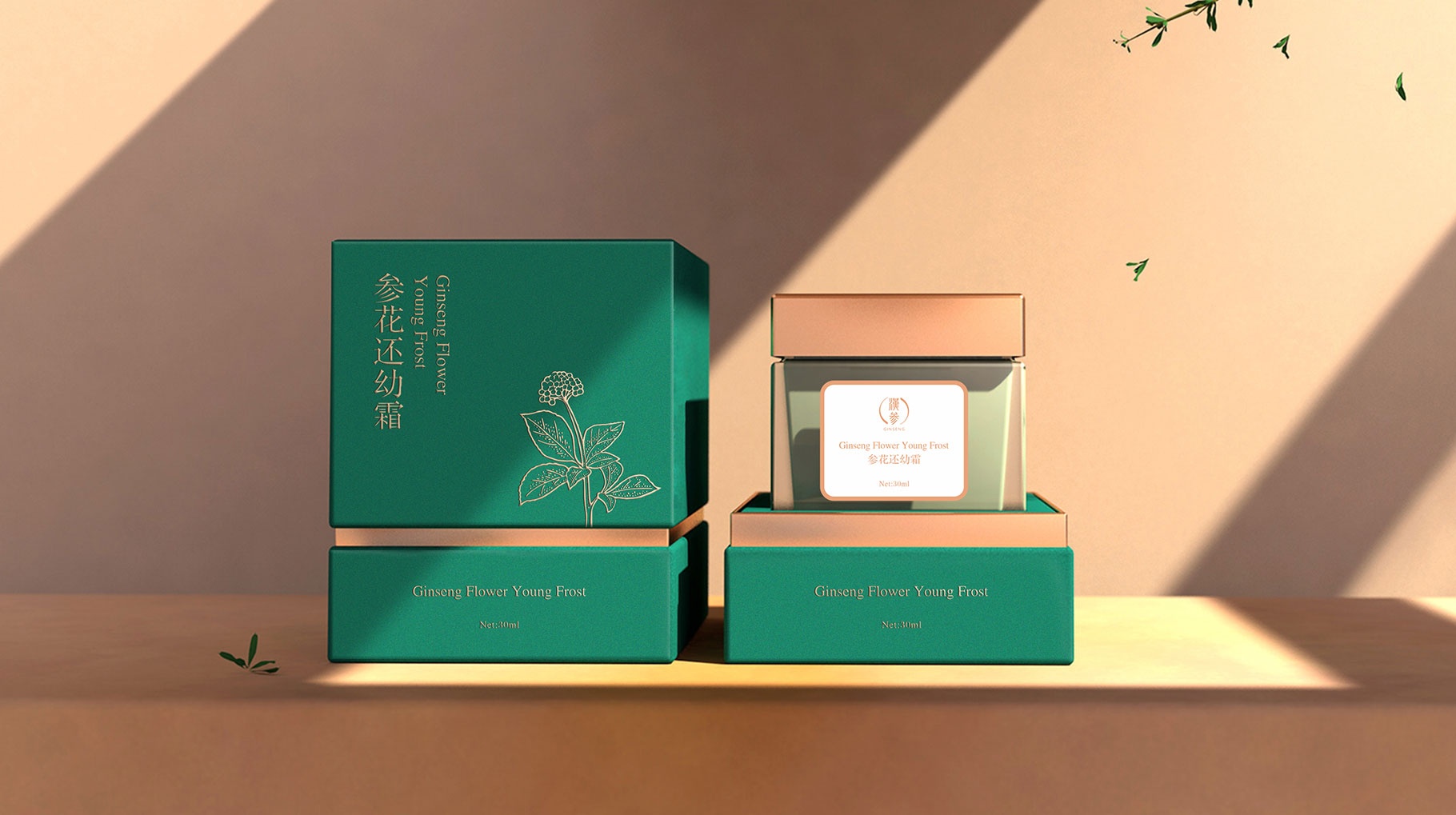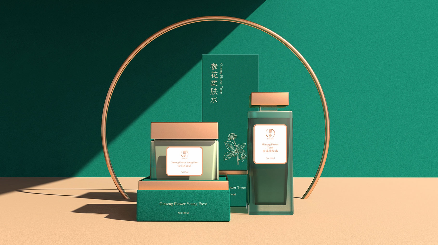 參花還幼霜護膚品包裝設計、參花柔膚水產品包裝設計、參花精油乳產品包裝設計、參花潔面乳等護膚品產品包裝設計