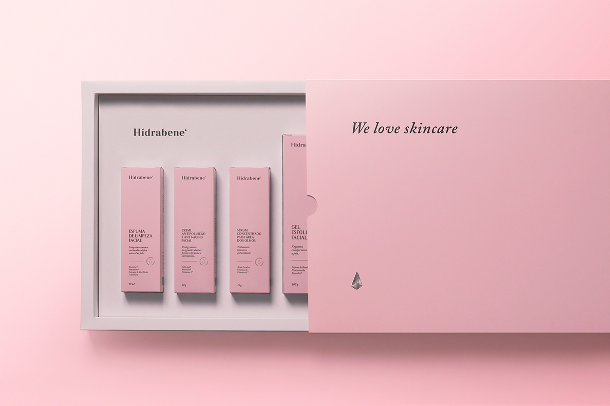 Hidrabene產品系列由身體和面部皮膚化妝品組成,采用化妝品部門認可的原材料,結合先進的局部治療和強化皮膚護理技術。 我們面臨的最大挑戰是開發能夠激發公眾信任的材料,這種材料通常非常忠實于他們目前使用的產品。特別是在護膚領域?;瘖y品包裝因此,我們在開發品牌時尋求客觀性和精確性 - 這是印刷品并展示一些圖形干涉,使其更具個性 - 轉向一個可以巧妙應用的圖標或成為新材料生命的主要組成部分。這個圖標本身只不過是一個水滴(指我們水合作用)與鉆石的合并(指的是疤痕,皮膚護理)?;瘖y品包裝設計公司按照這種思路,清晰度和客觀性指導項目開發,所選擇的顏色指的是皮膚的精致,化妝品包裝設計并具有足夠的對比度,以方便最終消費者閱讀信息。另一個問題是將正確的信息傳輸給用戶。我們首先分析了提供相關信息的最佳和最客觀的方式,美容產品盒包裝便于理解和突出購買產品的愿望。 Hidrabene系列產品可以在全國范圍內的藥店和專門商店中找到,并且在市場銷售一年多的時間里銷售取得了巨大的成功。