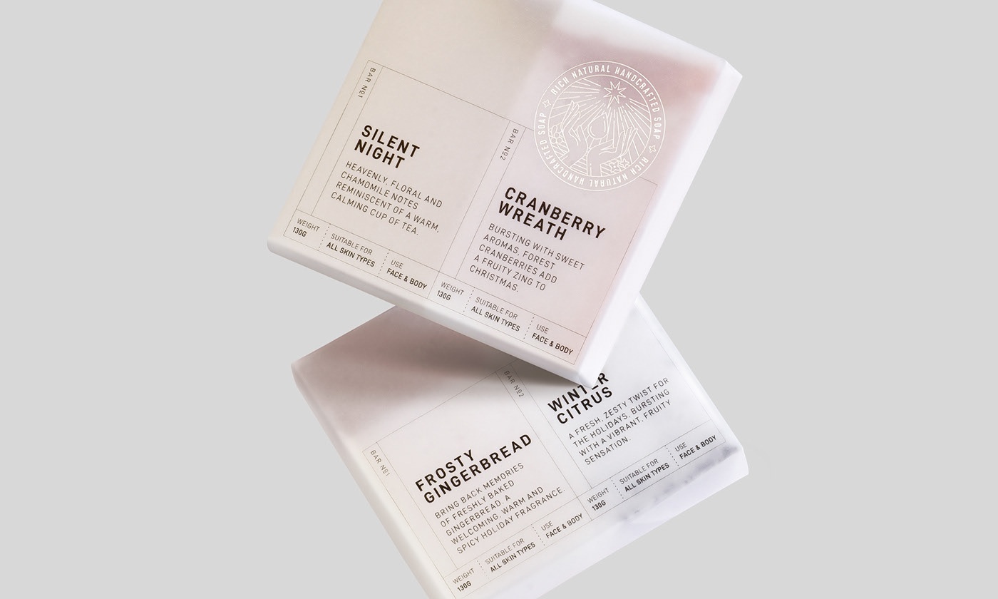 一下是深圳的創作人員的包裝設計用很少的裝飾和美化,這種用于一對手工皂條的包裝專注于其實用性并帶出產品的純度。