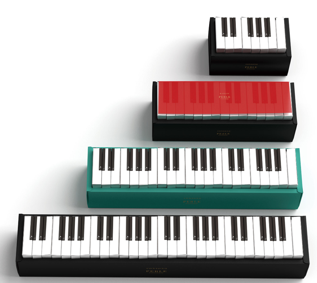 蛋糕包裝設計作為設計主題的鋼琴是一種可以整體演奏出優美和諧音色的樂器,每個鍵盤都可以產生共鳴。可以說,這是我們所生活的社會的縮影。我們希望與親密的人(如戀人,朋友,家人,公司同事,客戶等)的幸福,尊重沒有相同事物的個性(=鍵盤音),以及皮膚的顏色(=我們與世界和平,平等和幸福的共同愿望(美好的和諧)一起走過,超越了鍵盤顏色的界限),種族和信條。因為這是送給親人的禮物,所以我想給每個人一件實實在在的好東西。它是一種高級禮品包裝,可以滿足此類客戶的需求。盡管只有這種設計的焦糖盒,但是通過旋轉它,您可以表現出鍵盤的所有樣式。這種設計使您可以代表任何尺寸的鍵盤(從小型到88鍵的三角鋼琴,甚至更多)。例如,1個八度的13個鍵包含8個片段,2個八度的25個鍵包含15個片段,3個八度的37鍵包含22個片段,三角鋼琴的88個鍵包含52個片段。蛋糕的禮品包裝圖為15個蛋糕的盒子(兩個八度– W310mm * D110mm * H90mm)。